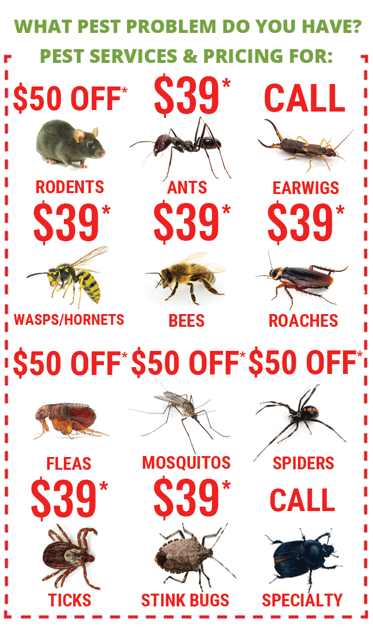 Our Online Only Pest Control Specials were such a hit last year that we just had to bring them back again this year. We are a full-service pest control provider offering services for rats and mice, as well as many other types of pests including ants, spiders, ticks, fleas, cockroaches, termites, stinging insects and much more. We offer pest services for residential, commercial and industrial properties. Give us a call today (24-hour support) and see how we can assist you eliminate your pest or rodent problem.